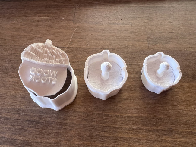 クッキーの型 3Dプリンター造形 2026.01.23 まだ試作段階ですが、クラプトンのWOOD STOCKカフェのオリジナルクッキーの型を作っています。作るロゴはこれ。このどんぐりをモデリングソフトで3Dにします。そしてプリントした製品がこちら。実際にパティシエさんに型抜きをしてもらいテストしてみました。そして焼き上がりました。なかなか良い感じです。とりあえず大きさ3種類作りました。文字の細さ、傘の表情にこだわっています。まだ完成ではないですが、フィードバックがあれば改善していこうと思っています。 PDFを開く