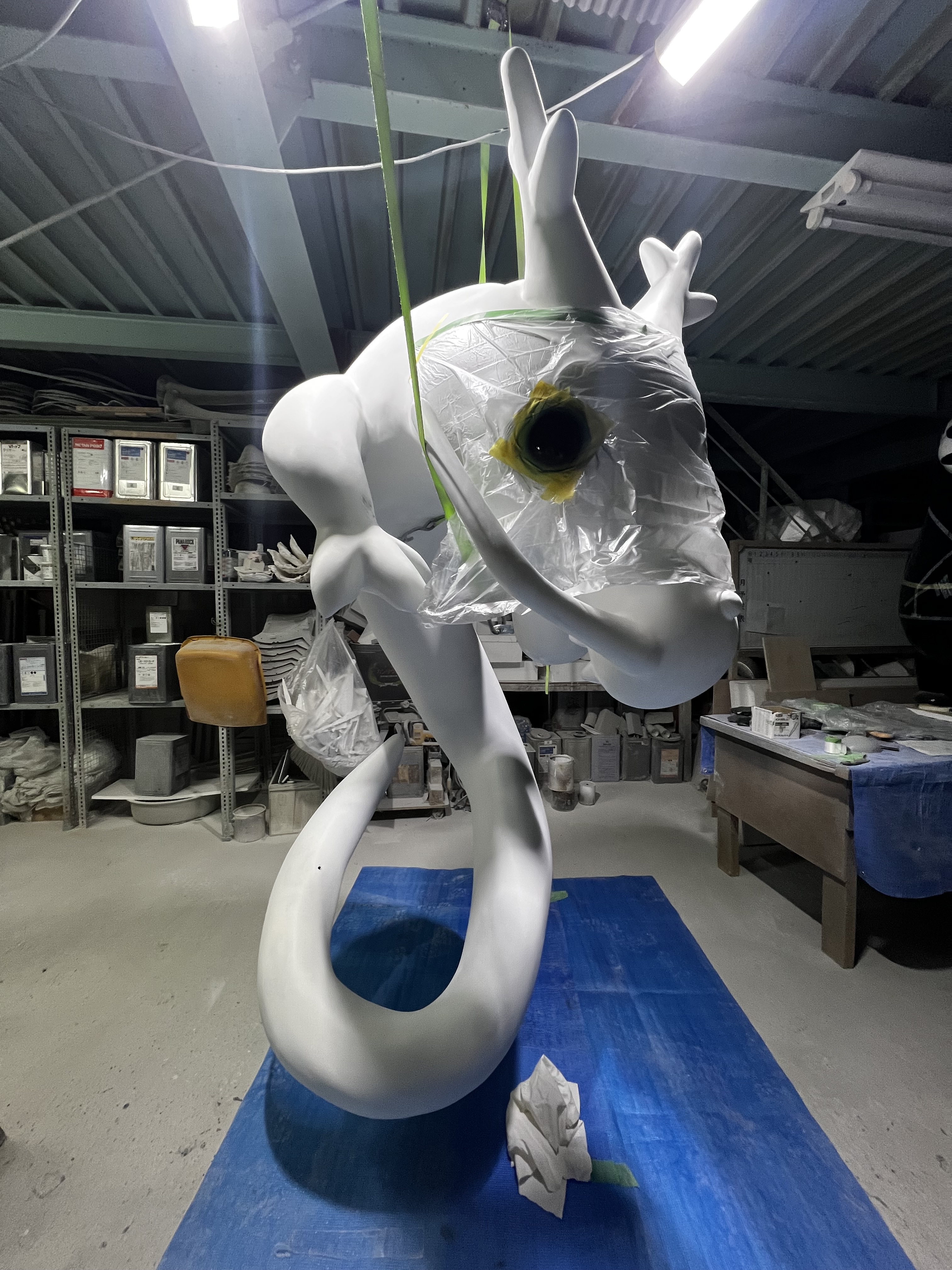 いよいよ今週に取付を控えたポストに巻き付く龍の塗装が始まりました。明日は概ね完全の予定。
