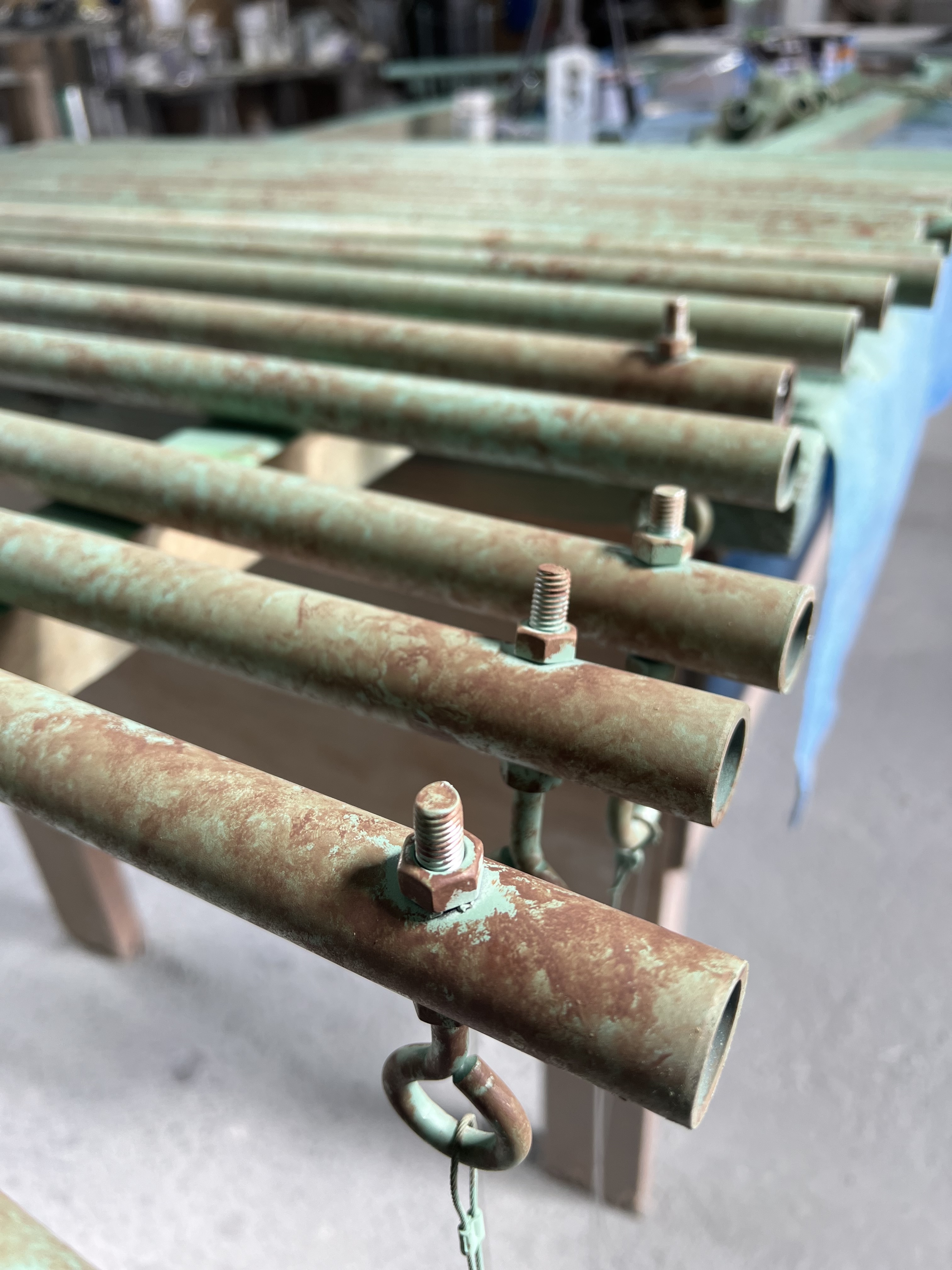 この錆びたパイプを組み上げ、絵画を展示するためのギャラリー空間を演出いたしました。
